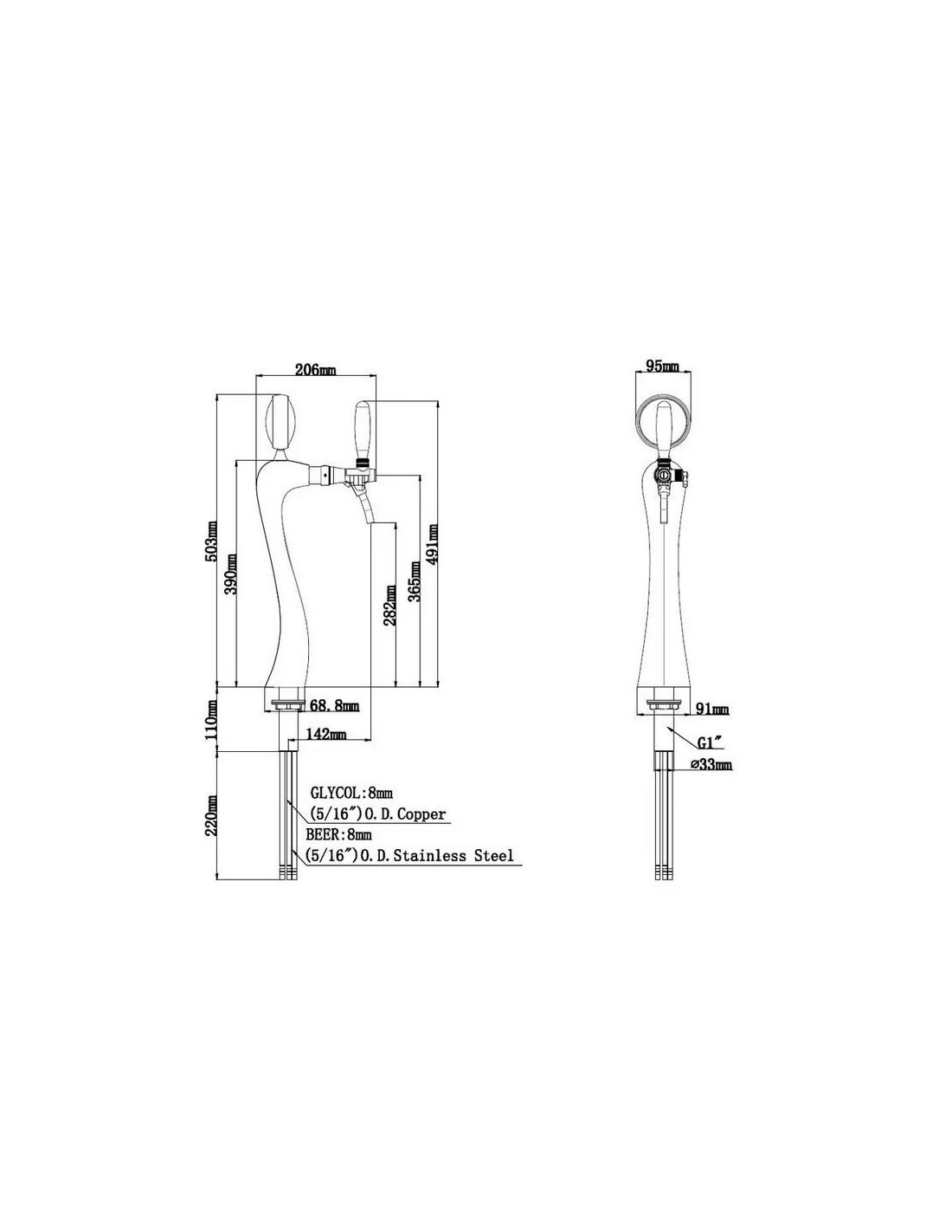 Esta torre dispensadora de una salida provista de tap con control de flujo le dan un toque de elegancia a todo bar cervecero.