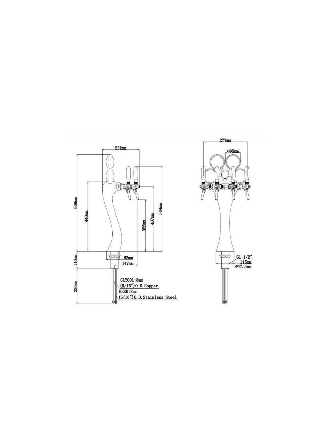 Esta torre dispensadora de cuatro salidas provista de taps con control de flujo le dan un toque de elegancia a todo bar cervecero.