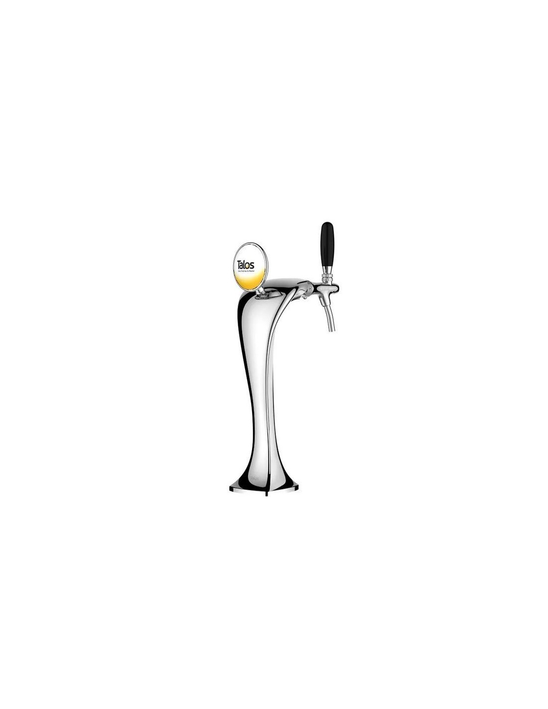 Esta torre dispensadora de una salidas provista de canilla con control de flujo le dan un toque de elegancia a todo bar cervecero. Está elaborada de bronce con acabado cromado y mientras que todo lo que toca la cerveza esta elaborado de acero inoxidable. Posee líneas adicionales de entrada y salida para el sistema de enfriamiento en caso de requerirlo.